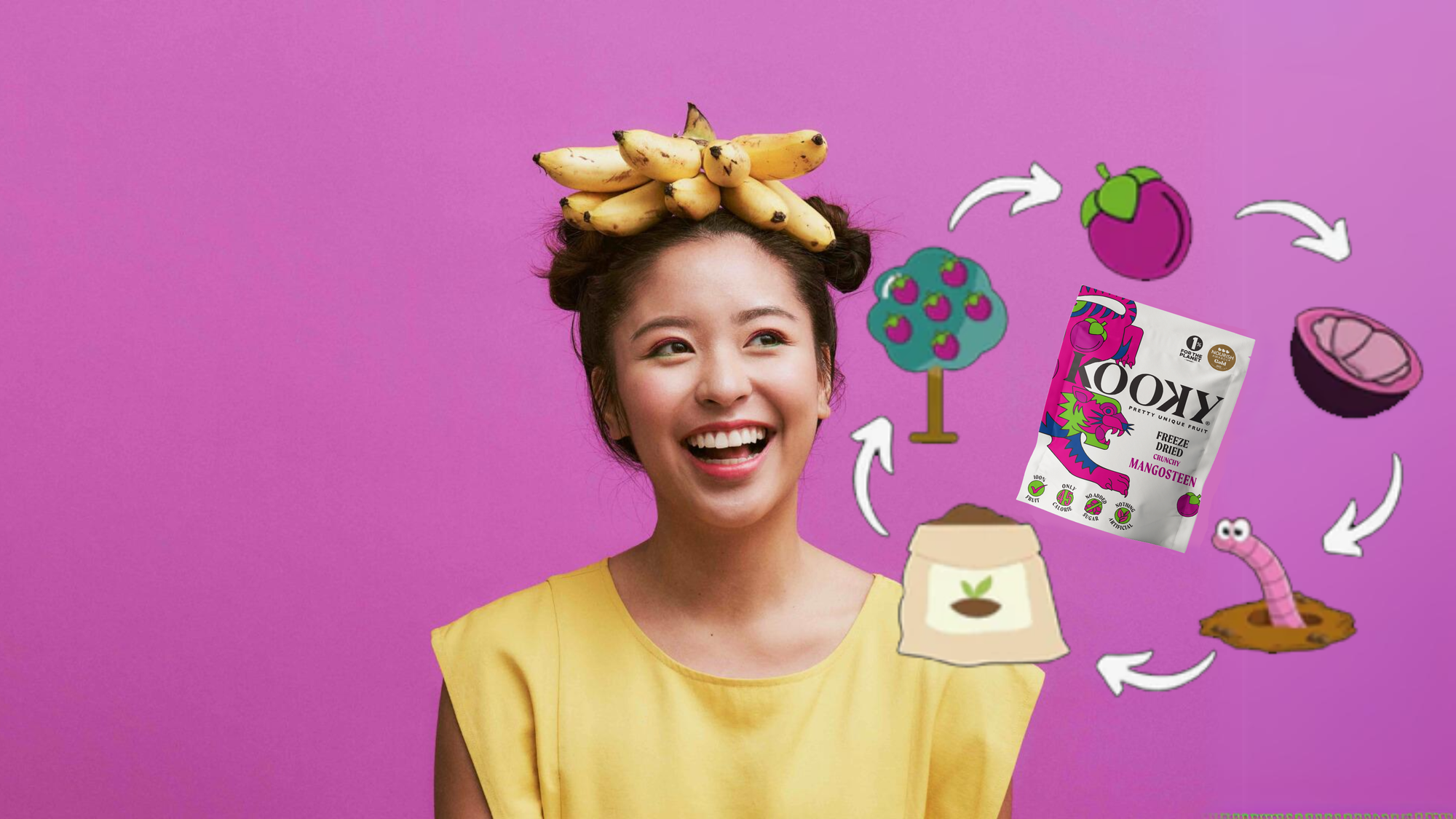 At Kooky, our special friends, the earthworms, will slowly eat all the fruit parts (that we don’t eat) and produce afterward vermicast (or “worm poop”) which is then used as natural fertilizers to grow fruit and vegetables.